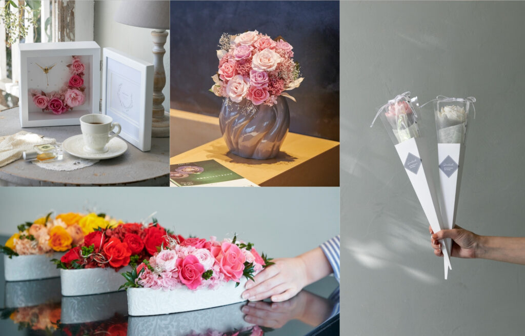 アプラスでは、プリザーブドやアーティフィシャル素材を用い、 枯れずに長く楽しめる華やかなギフトを多数展開しています。